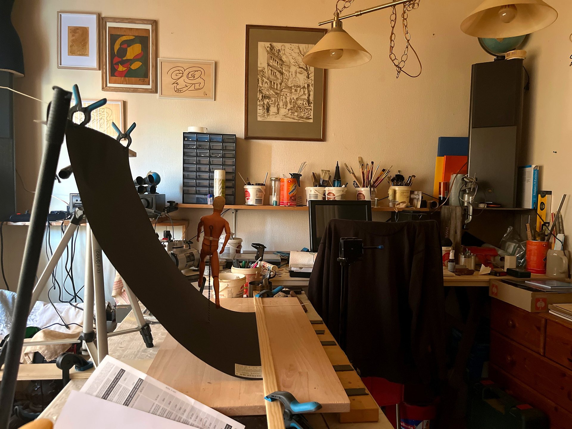Hier entstehen die ersten Entwürfe und Farbexperimente.